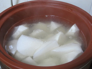 3.不管是排骨、羊肉,还是鸡、鸭,一定要焯水再煲。焯水可以把动物性原材料中的血污排出。如猪肉、牛肉、羊肉等,用水焯去血污以后会使原料白净,烹饪中不出血污,同时减少腥味、膻味。但是记得,凡有焯水的肉类,下锅就不可用冷水,得改沸水了。